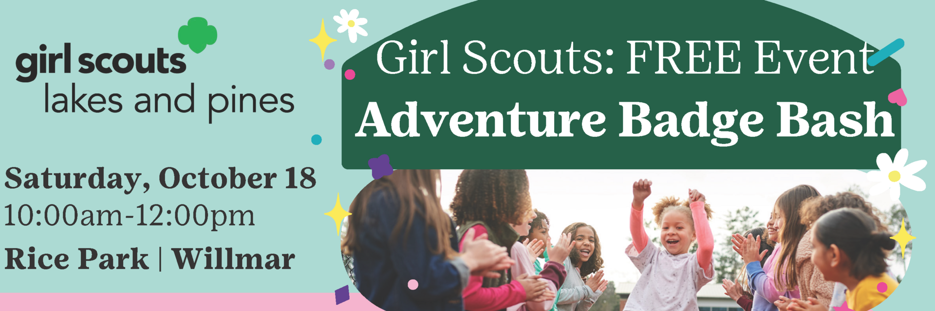Join us at Rice Park for a FREE Adventure Badge Bash and discover what being a Girl Scout is all about!🌟 This drop-in, family-friendly event is designed to help new families learn more about Girl Scouts—and it’s also a great opportunity for current members to join the fun and bring along friends who are interested in learning more.